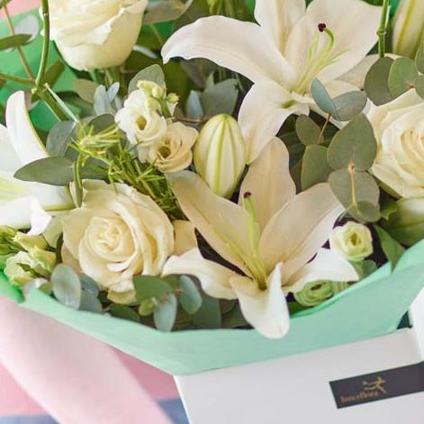 This elegant birthday bouquet features stunning white roses and sculptural white lilies. Handcrafted just for the birthday girl or boy, their local florist will also choose co-ordinating blooms and foliage to make sure their bouquet brings the most birthday joy.