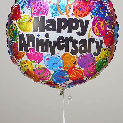 Send your wishes with a surprise delivery of a ‘Happy Anniversary’ worded helium-filled balloon. Mark this special day with this brightly coloured balloon tied with ribbon to match delivered with a balloon weight.